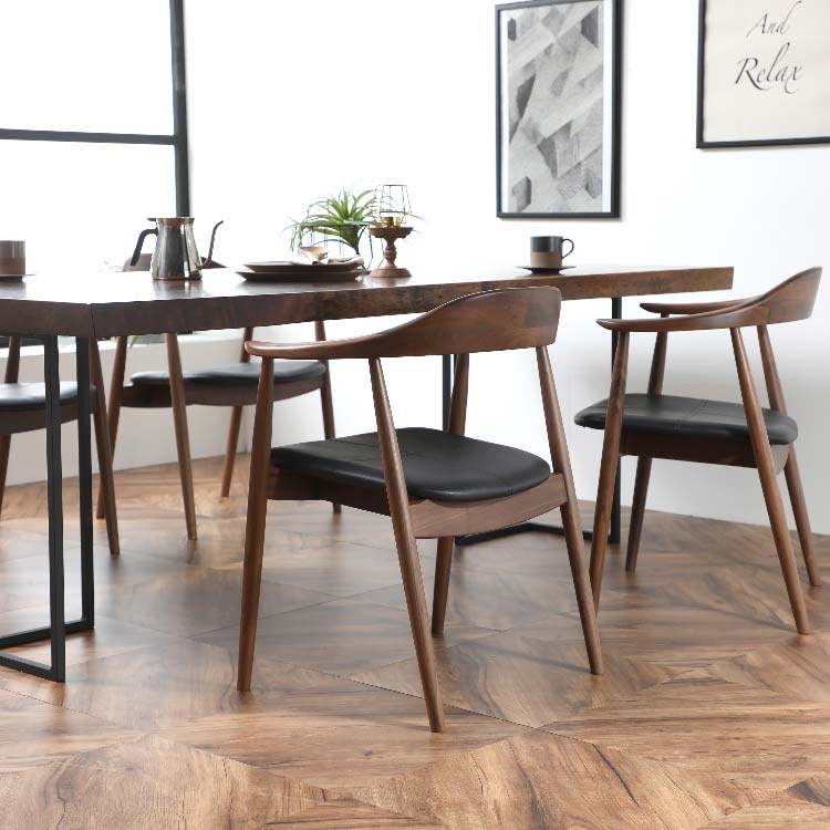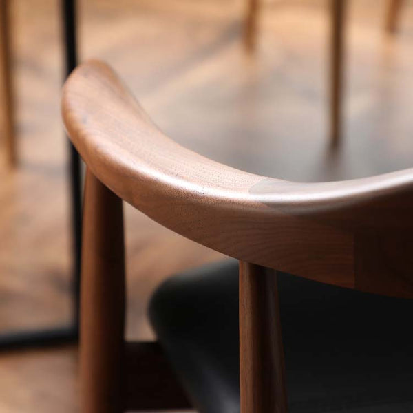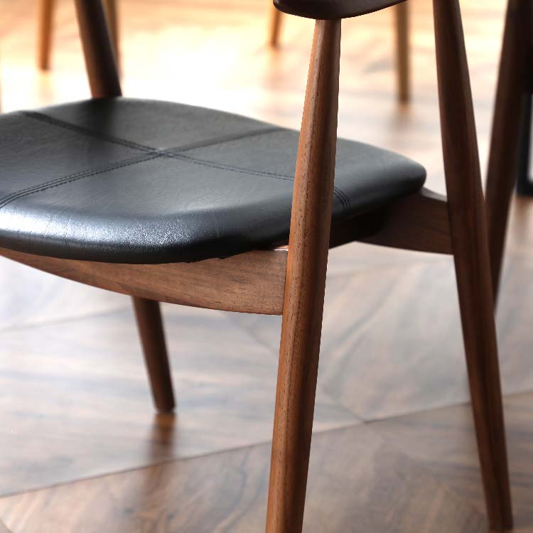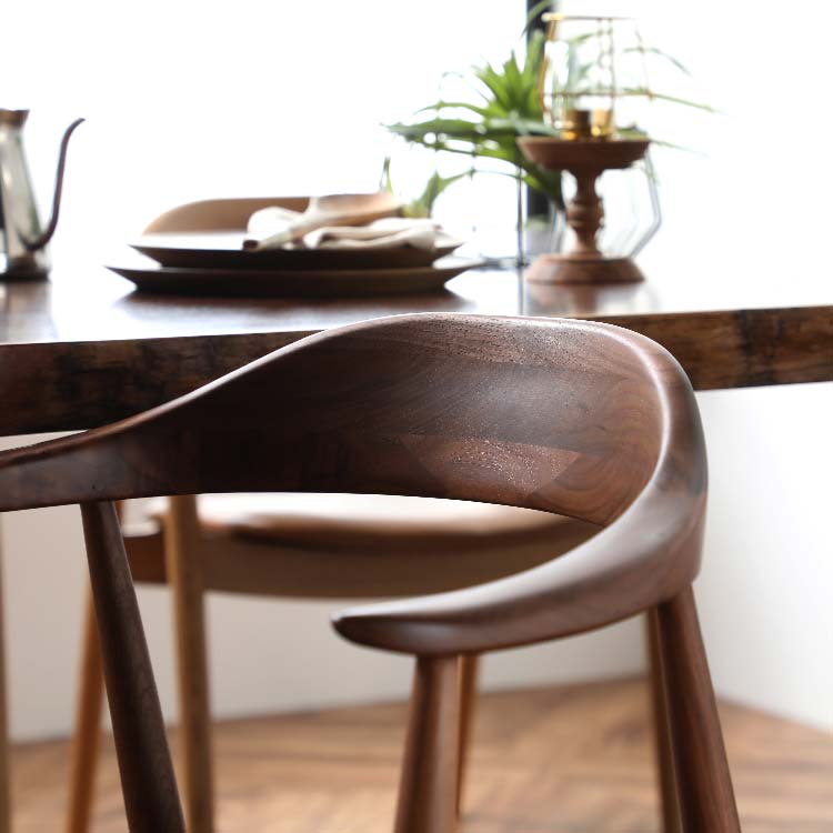 曲線を組み合わせて細部まで配慮したダイニングチェアです。