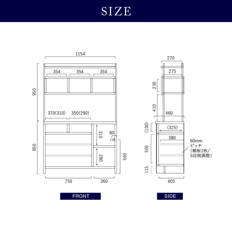 | 耐荷重 | カウンター40kg、スライドカウンター15kg、引出15kg |