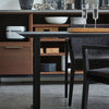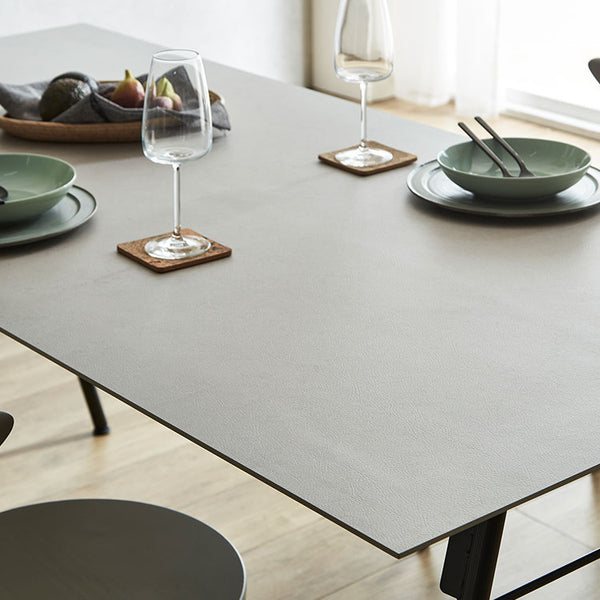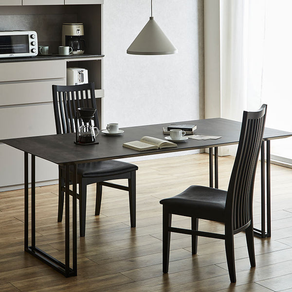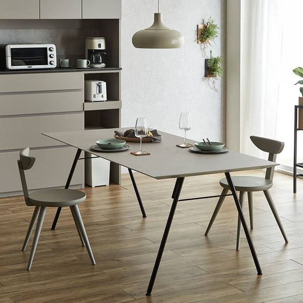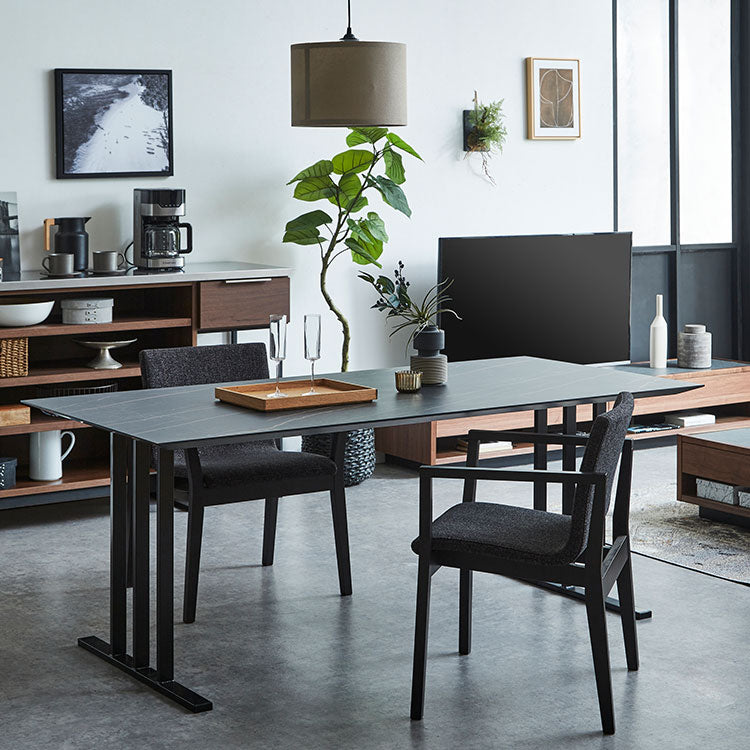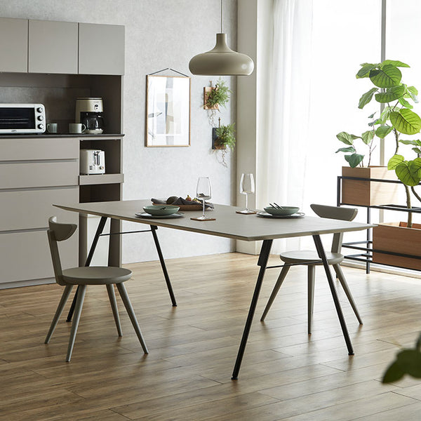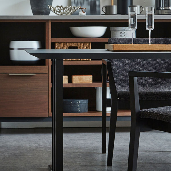 | 商品情報 | 天板カラーを、3種のメラミン材からセレクト可能です。グレージュレザーはレザーの凹凸を表現したグレージュカラー、ブラックストーンは雷のような模様が印象的な黒系の石目調、パティナは金属が酸化し変色したような質感をイメージしています。どれも天板の印象を最大限引き出すため、エッジを可能な限り薄く見せる設計としています。 |