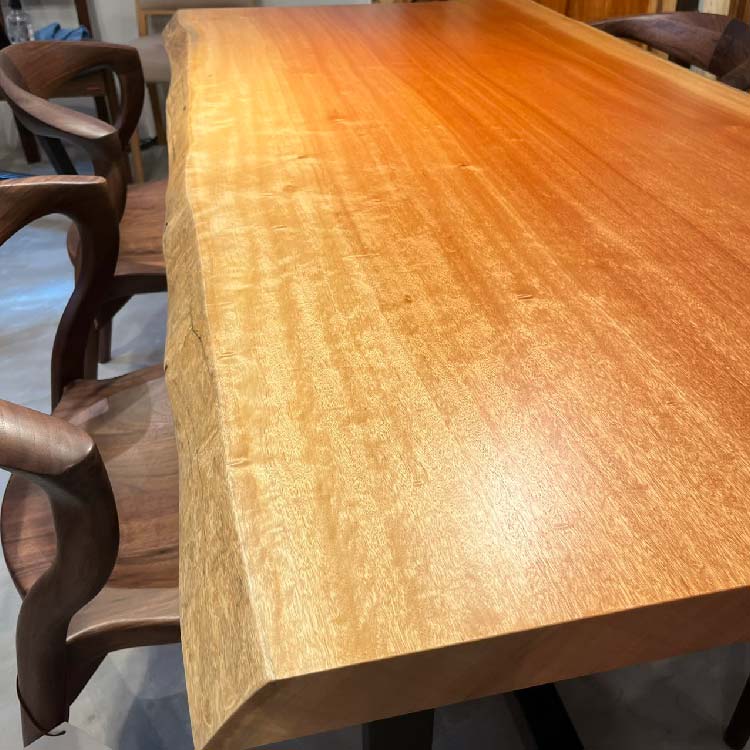 木には人と同じように個性があります。樹種や産地、樹齢はもちろん、同じ丸太から製材した一枚板でも同じものはひとつとしてありません。同じ名前の木でも色の明るいもの、暗いもの、節があるもの、傷があるものなど様々です。それは木が長い年月を過ごしてきた証であり、木が持つ個性です。だからこそ一枚板は‘世界にひとつのモノ’になるのです。