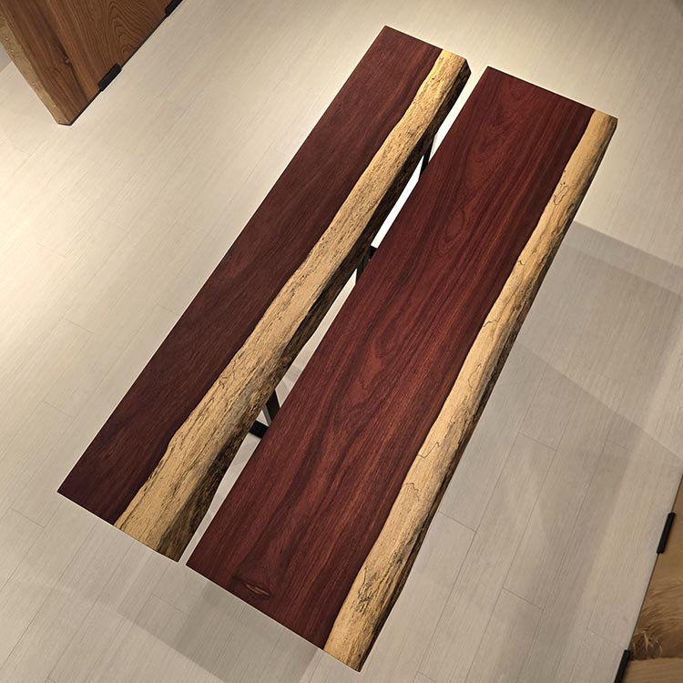 木には人と同じように個性があります。樹種や産地、樹齢はもちろん、同じ丸太から製材した一枚板でも同じものはひとつとしてありません。同じ名前の木でも色の明るいもの、暗いもの、節があるもの、傷があるものなど様々です。それは木が長い年月を過ごしてきた証であり、木が持つ個性です。だからこそ一枚板は‘世界にひとつのモノ’になるのです。