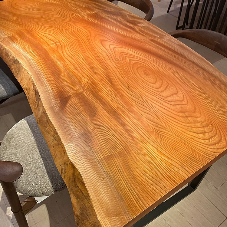 木には人と同じように個性があります。樹種や産地、樹齢はもちろん、同じ丸太から製材した一枚板でも同じものはひとつとしてありません。同じ名前の木でも色の明るいもの、暗いもの、節があるもの、傷があるものなど様々です。それは木が長い年月を過ごしてきた証であり、木が持つ個性です。だからこそ一枚板は‘世界にひとつのモノ’になるのです。
