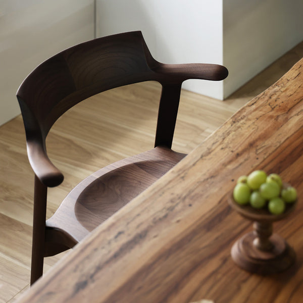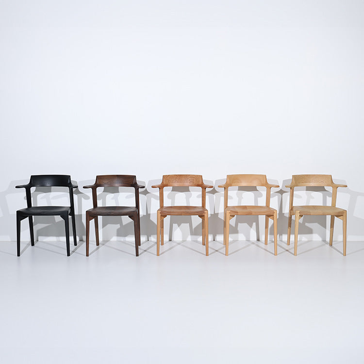 曲木や張地にはないフィット感や温かみを生むために、3次曲面で削り出された背もたれや座面は、